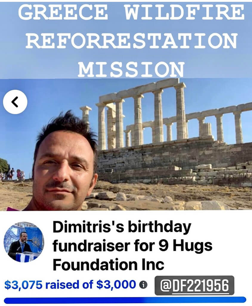 Due to the annual wildfires, 9 H.U.G.S decided to dig deeper into this issue and create the Reforestation Mission in collaboration with renowned journalist Dimitri Phillipidis and philanthropists and Ovelia owners Peter and Chris Giannakas. We hosted an event to launch a monetary fund aimed at helping restore what was lost. We are currently reviving acres of land by planting olive trees at Lyreio Orphanage, dedicating each tree to a sponsor’s name upon request. This is an ongoing process, and we hope you will continue to join us in our efforts.